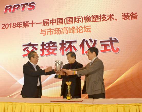 隨后,大會(huì )主持人黃紹敏副秘書(shū)長(cháng)宣布:第十一屆高峰論壇的獨家協(xié)辦單位是中國化學(xué)工業(yè)桂林工程有限公司。大會(huì )全稱(chēng)為:2018年“桂林橡院杯”第十一屆中國(國際)橡塑技術(shù)、裝備與市場(chǎng)高峰論壇,并進(jìn)行了大會(huì )交接杯儀式。